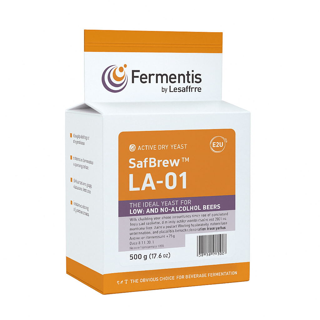 SafBrew™ LA-01 – Yeast for Low & No-Alcohol BeerA specialized yeast (Saccharomyces cerevisiae var. chevalieri) ideal for brewing low- and non-alcoholic beers (<0.5% ABV). It ferments only simple sugars, leaving maltose and maltotriose unfermented, and produces a clean, subtle flavor profile.Apparent attenuation: ~15%, Best at 15–25°C. Medium sedimentation. Suitable for direct pitching or rehydration.