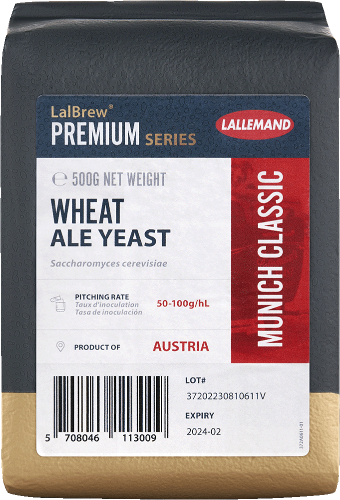LalBrew Munich Classic™ – Authentic Yeast for German Wheat BeersA traditional Bavarian strain known for producing rich banana and clove aromas. With high ester and phenol levels, it's perfect for Hefeweizen, Weissbier, Dunkelweizen, and Weizenbock. Top-cropping and consistent, it’s ideal for classic open fermentation.