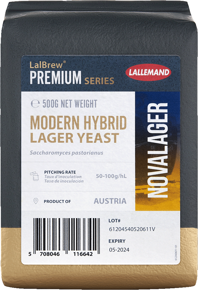 LalBrew NovaLager™ – Next-Gen Lager Yeast for Clean, Fast Fermentations\A hybrid Saccharomyces pastorianus strain from the novel Group III lineage, LalBrew NovaLager™ delivers clean lager profiles with slight esters and minimal off-flavors. It offers rapid fermentation, high attenuation, low diacetyl, and no H₂S—perfect for modern, efficient lager production.